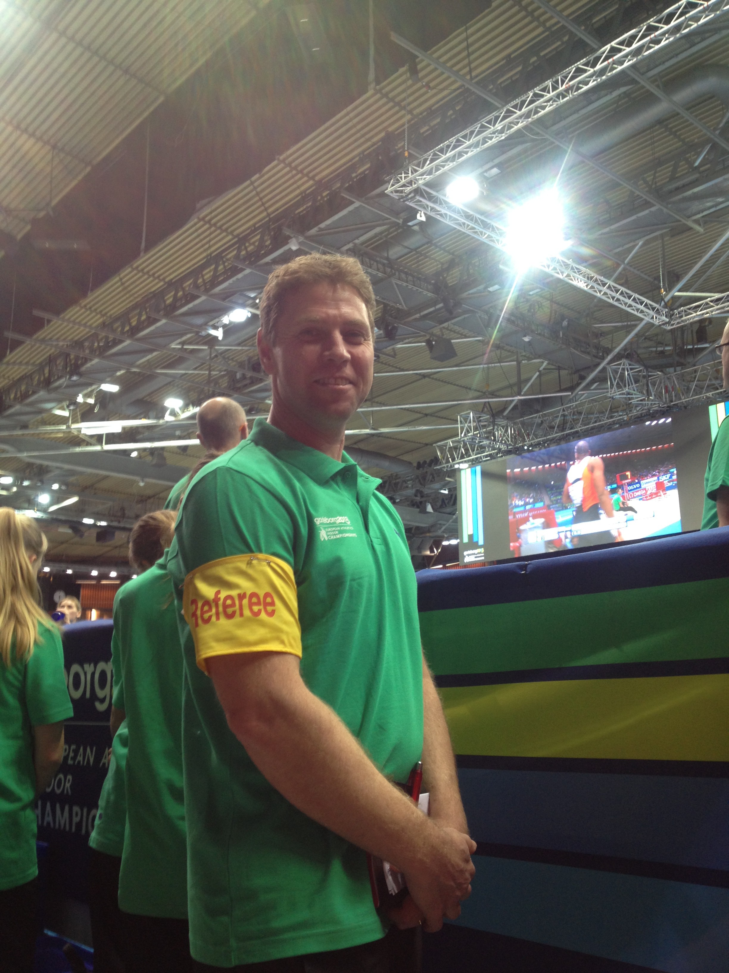 Här är Stefan med sin ”refereebindel” mitt under brinnande EM- tävlingar.