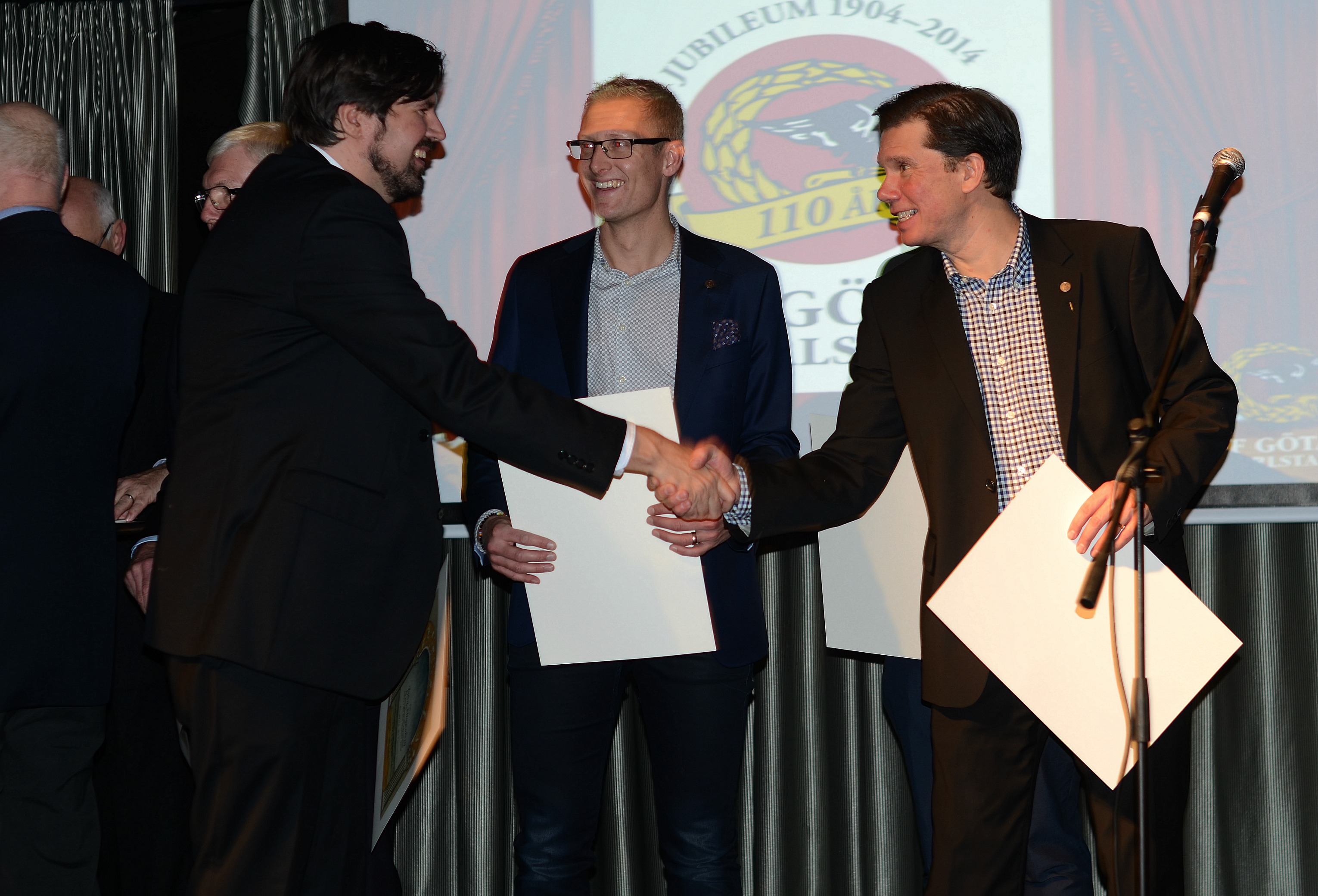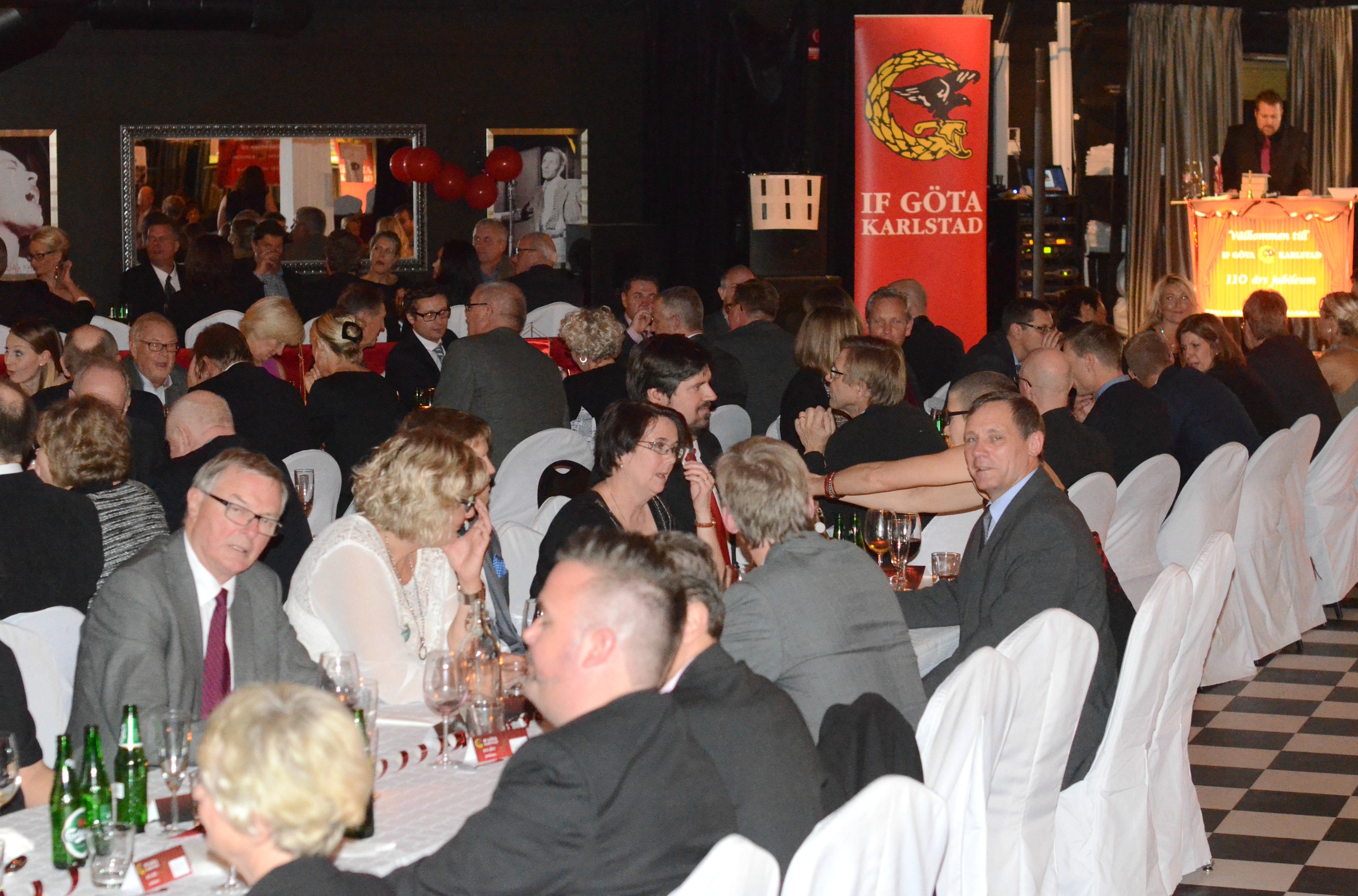Med anledning av att föreningen i år fyller 110 år ställdes det till med fest under lördagskvällen! Den årliga funktionärsfesten förstärktes och vi passade på att blicka tillbaka på åren som gått och fira en välmående och glad 110-åring! 120-talet föreningsmedlemmar fanns på plats i Pitchers festvåning när Andreas Thornell, som inhyrd konferencier från friidrottsförbundet, inledde med filmvisning och praktisk genomgång. Filmen tog oss från 1904 till 2014 ur ett Götaperspektiv, riktigt spännande att se. Efter att ordföranden Jonas Ekstam sedan hälsat välkommen via brev (Jonas representerade föreningen på den årliga ordförandekonferesen i Stockholm och kunde därför inte vara på plats) och med hjälp av vice ordförande Knut Jenssen var festen i full gång!