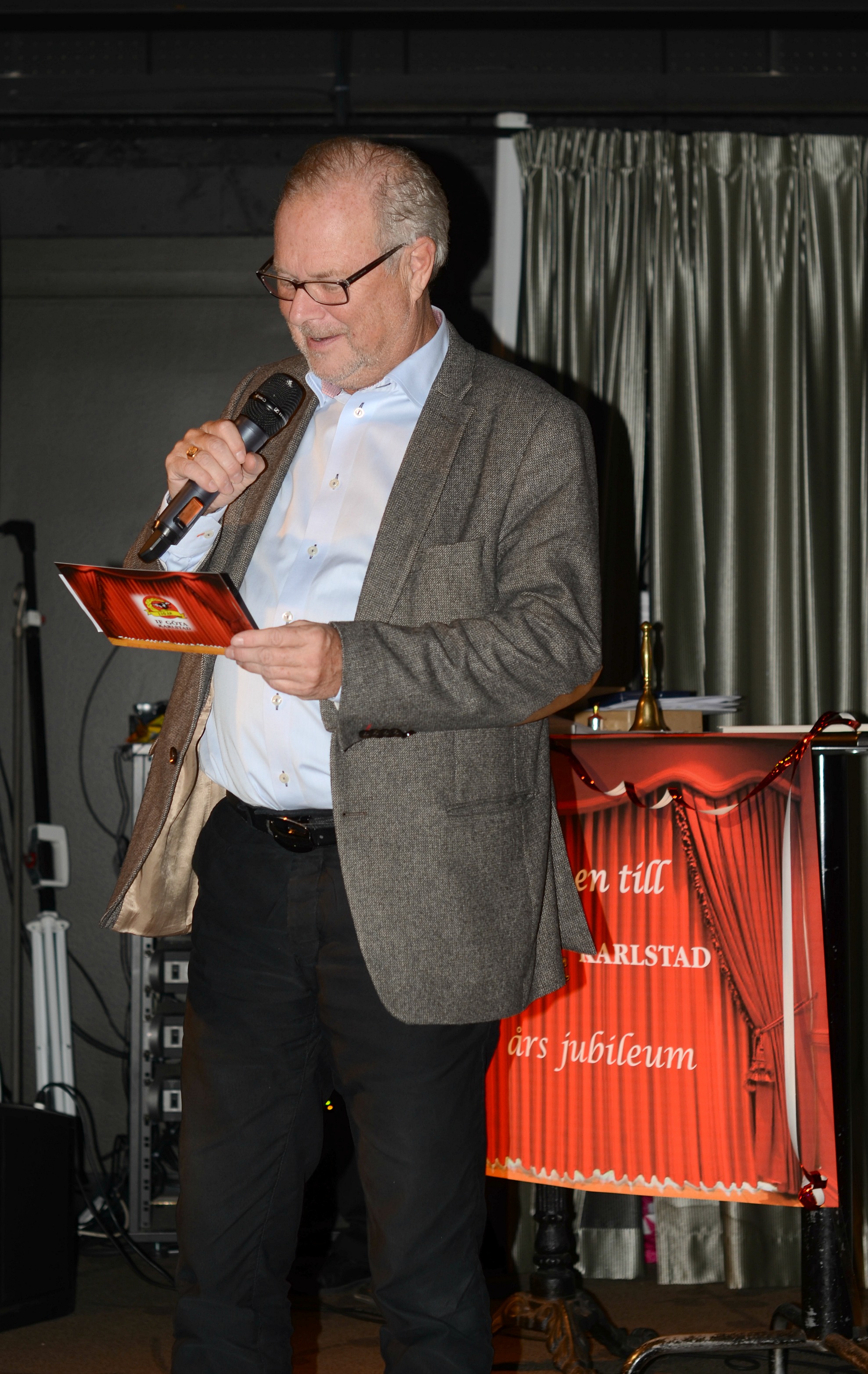 Björn Sandborgh, även han tidigare ordförande i föreningen, gjorde en favorit i repris och uppträdde från scenen med sång och gitarr, ett mycket uppskattat inslag under middagen. Ni kanske minns när Björn för några år sedan invigde Karlstad Grand Prix med Värmlandsvisan. Det torde än så länge vara den enda svenska friidrottsgala som invigts av en ordförande på det viset. Efter middagsbuffén var det dags för tårta fint komponerad av Konsum Värmland och City Tryck.