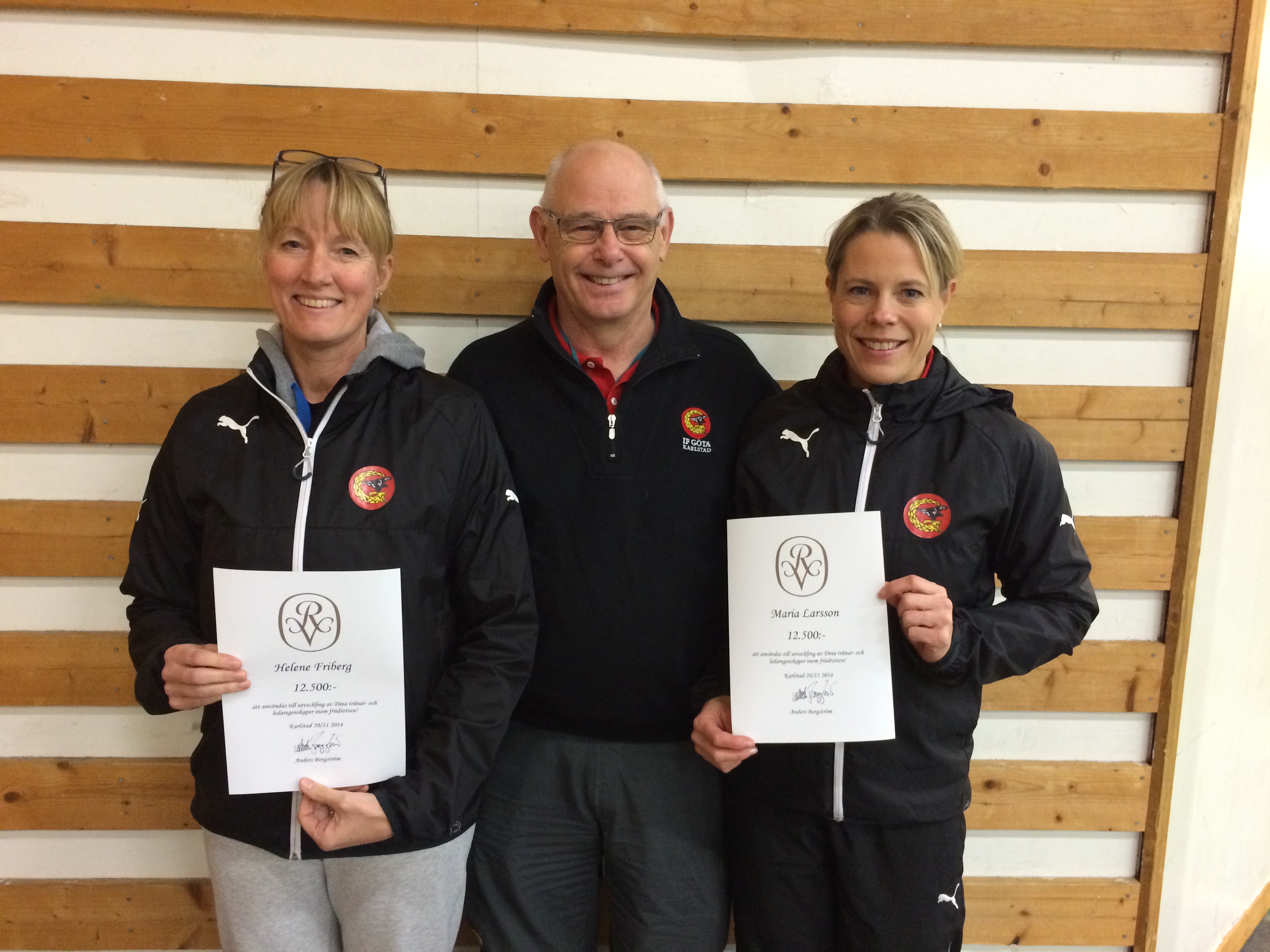”Det ändamål jag kommer att anvisa stipendierna till kändes omedelbart helt klart. Självfallet blir det till IF Göta! När jag sedan tänkte lite mer djupt på det hela så vill jag faktiskt än mer precisera det hela. Det skall gå till ledar-/tränarutveckling. Föreningen har ju, kan man säga, viss tradition på området eftersom TRE av de TIO som hittills fått förtroendet att vara ytterst ansvariga förbundskaptener för svensk friidrott har ju fått sin fostran i Göta. Samtidigt har vi, liksom stora delar av övriga friidrotts-Sverige, haft svårigheter att rekrytera kvinnliga ledare/tränare. På nationell nivå har Karin Torneklint brutit isen med sin nuvarande roll. Det har väl bara hänt en gång tidigare att en kvinna varit förbundskapten även för Sveriges manliga landslag (innebandy om jag inte minns fel). Vi har i Göta äntligen två kvinnor, som ger järnet i sina tränarroller – den ena har nu t.o.m. tjänst vid FIG. Båda har elitbakgrund och tävlat i blågult. Så stipendiet kommer att vandra vidare till dessa båda att användas till kurs(er) och/eller studieresor som främjar deras fortsatta utveckling som tränare. De heter Helene Friberg och Maria Larsson. Jag har, under hela deras tränarkarriärer, försökt uppmuntra båda två och poängterat vad värdefullt jag tycker det vara, att tjejer med elitbakgrund ger sig in i tränarrollen och delar med sig av sina erfarenheter – och nu känns det oerhört kul att kunna stötta dom, inte bara med en vänlig klapp på axeln (vilket i sig inte skall underskattas) – utan även med ett substansfullt bidrag till fortsatta utbildnings-/utvecklingsmöjligheter!”