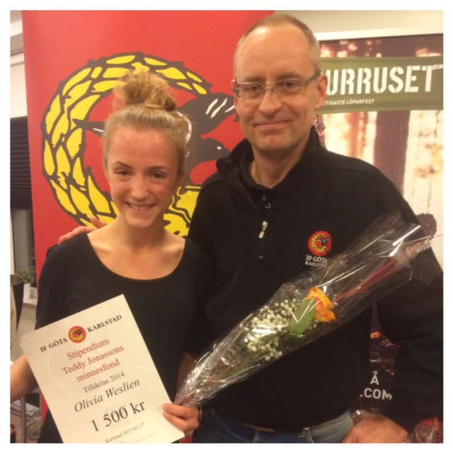 Stefan Wagnsson delade sedan ut ett nyinstiftat stipendium till Olivia Weslien. Några av Teddy Jonassons adepter valde att efter Teddy bortgång under 2014 instifta detta stipendium till Teddys minne. Priset ska tilldelas en löpare mellan 15 och 35 år som gjort stora förbättringar på sin distans. Olivia blev den första stipendiaten och det motiverades enligt detta: