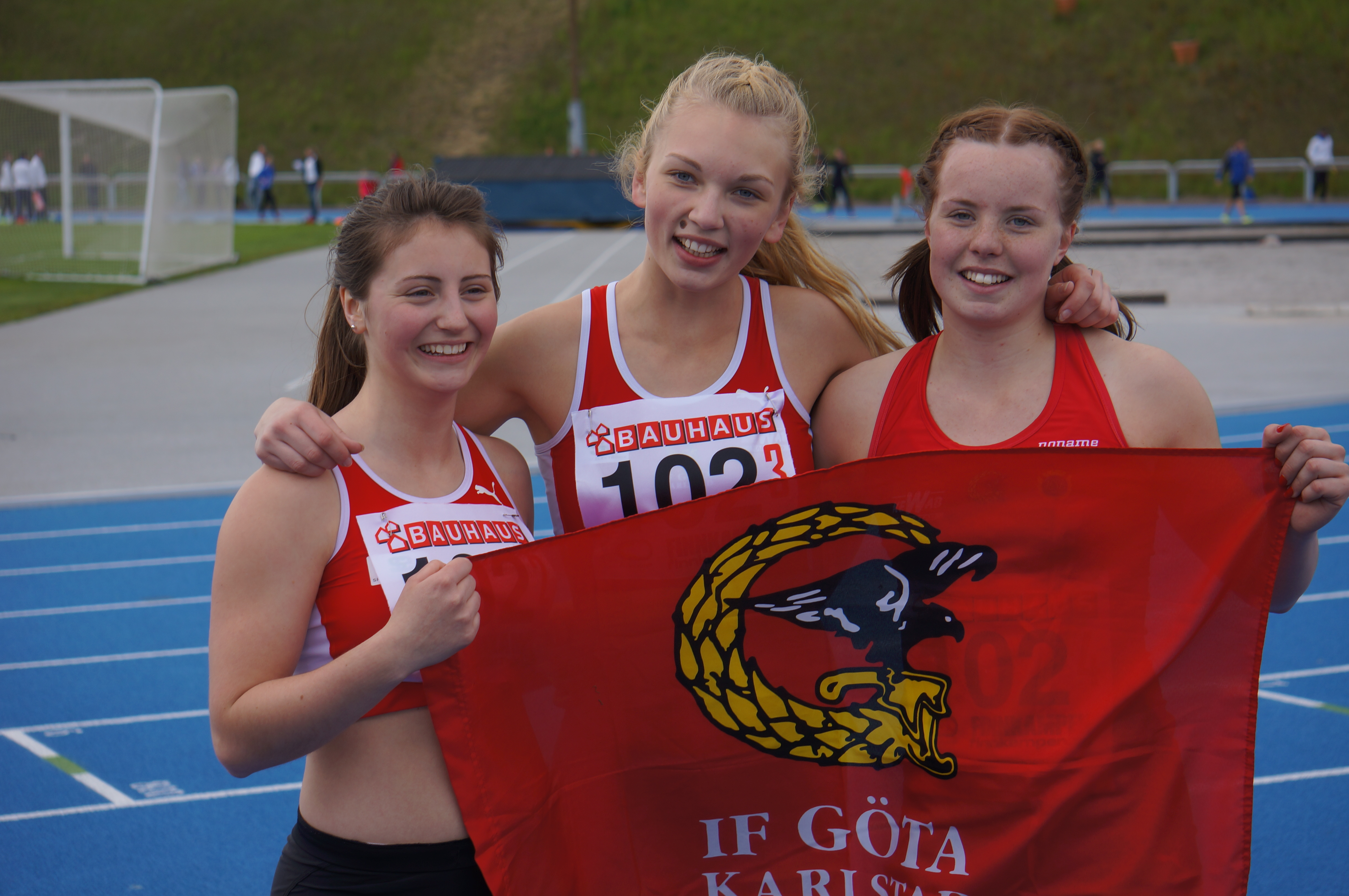Lördagen erbjöd strålande sol och gott väder. På programmet stod svensk stafett (100, 200, 300, 400 meter) och medeldistans för de yngre samt 4×100 meter för seniorerna. Vi börjar med flickor 17 där Göta ställde hela tre lag på startlinjen, flest lag i den klassen. Samtliga tre lag imponerade och ett lag kvalificerade sig till finalen. Götas lag 2 med Ebba Gustavsson, Klara Hallgren, Lovisa Ellström och Ida Holmberg noterade 2.33,66 efter fina löpningar. Götas lag 3 noterade 2.46,12 och här sprang Sandra Vesterling, Jonna Uttman, Camilla Appel och Martina Bergqvist. För final krävdes 2.23 och Götas lag 1 med Alexandra Larsson, Linn Bäcklin, Victoria Sandsjoe och Minna Svärd sprang in som heattvåa på 2.21,89. I finalen förbättrade tjejerna sig avsevärt och gjorde en fantastisk stafett och utmanade GKIK ända in på mållinjen till 2.17,26 och silver, bara tiondelar från segern!! Snacka om att prestera när det gäller! Föreningens seniordamer startade i 4×100 meter där det blev final direkt med sex lag. Göta med Maryann Andreasson, Caroline Tegel, Ida Hansen och Alexandra Larsson kom i mål som femma men två lag konstaterades snabbt diskade för överväxel. Därmed trodde vi att medalj nummer två var bärgad men en protest lämnades in av Hässelby och densamma godkändes varför Göta förpassades till fjärdeplatsen med tiden 47.75. Föreningens 15-åriga grabbar debuterade under helgen när vi pratar svenska mästerskap utomhus. På 3×800 sprang Victor Thunström, Rasmus Tidestad och David Nilsson riktigt bra och kom i mål som sjua bland 11 lag med 7.06. Även i P17 fick vi se härlig kämpaglöd på den svenska stafetten när Henrik Nordlander, Markus Asplund, Tobias Söderberg och Olle Wahlström gick till final efter 2.06,90. I finalen blev det sedan en åttonde plats.