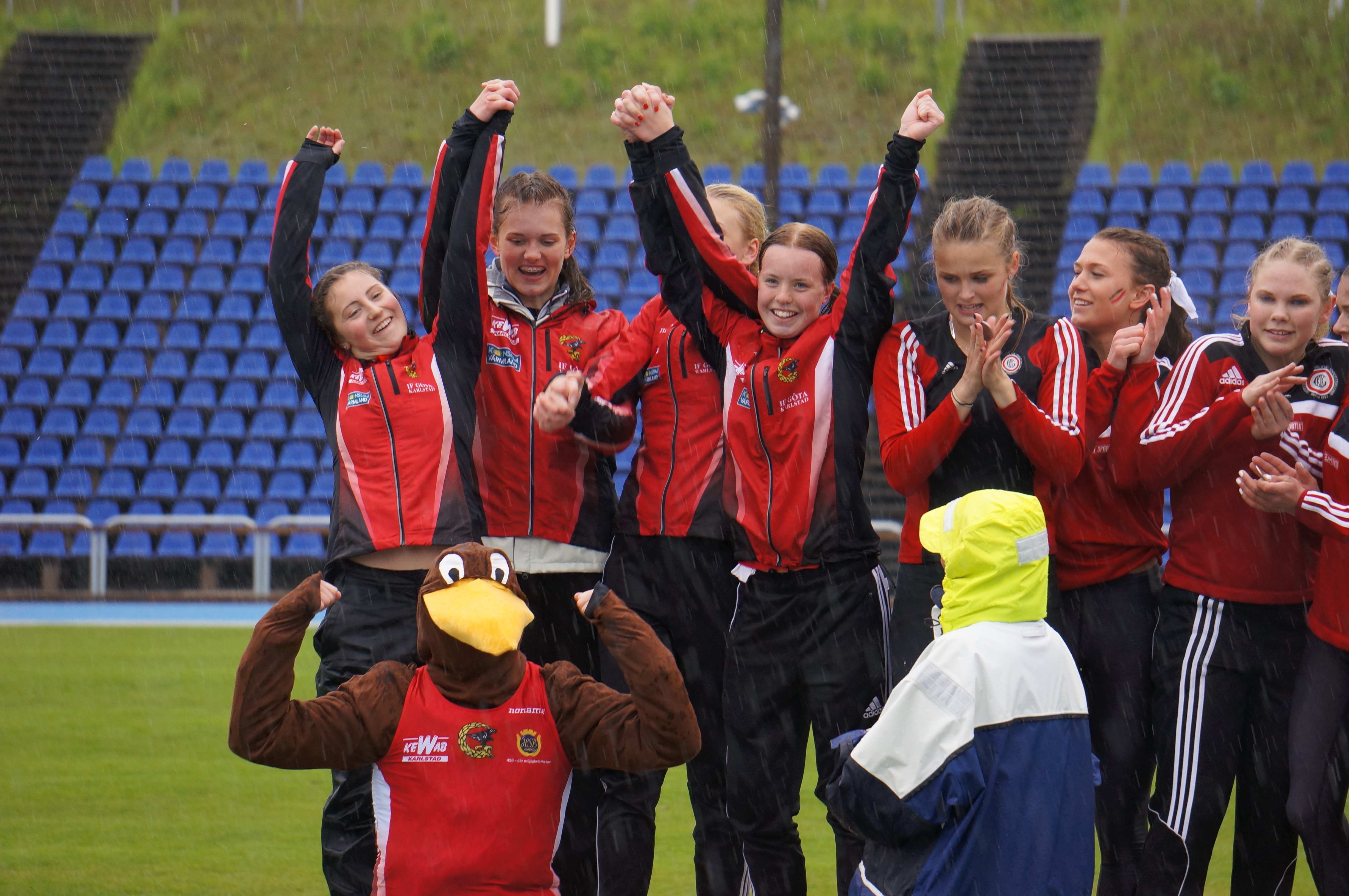 Söndagen bjöd tyvärr inte samma väder utan de aktiva fick fightas också mot hårt regn och låg temperatur. Här sprang P17 igen och denna gången 4×100 meter. Henrik Nordlander, Tobias Söderberg, Markus Asplund och Olle Wahlström gick med 46.47 vidare till final. I finalen blev det lite strul med växlingarna och 47.46 men en mycket god sjätte plats. Den andra medaljen kom i P15 4×80 meter där Daniel Grenegård, Rasmus Tidestad, Melker Gustavsson och Victor Thunström vann sitt försöksheat på 37.83. I finalen förbättrade de sin tid till fina 37.33 vilket räckte till en silvermedalj bara två tiondelar bakom segrande Huddinge. Den sista och tredje medaljen kom i F17 4×100 meter där tjejerna i Götas lag 1 fick revansch på GKIK från dagen innan. Efter 48.49 i försöken förbättrade man sin tid i finalen med en hundradel till 48.48. En mycket viktig hundradel skulle det visa sig då båda lagen stannade på 48.48 och segermarginalen skrevs till 4 tusendelar. Linn Bäcklin, Alexandra Larsson, Victoria Sandsjoe och Minna Svärd kan numera alltså titulera sig svenska mästare i stafett för F17! Även här fanns inte mindre än tre Götalag med på startlinjen och i lag 2 sprang Ebba Gustavsson, Camilla Appel, Sandra Vesterling och Klara Hallgren. I lag 3 sprang Lovisa Ellström, Martina Bergqvist, Ida Holmberg och Jonna Uttman.