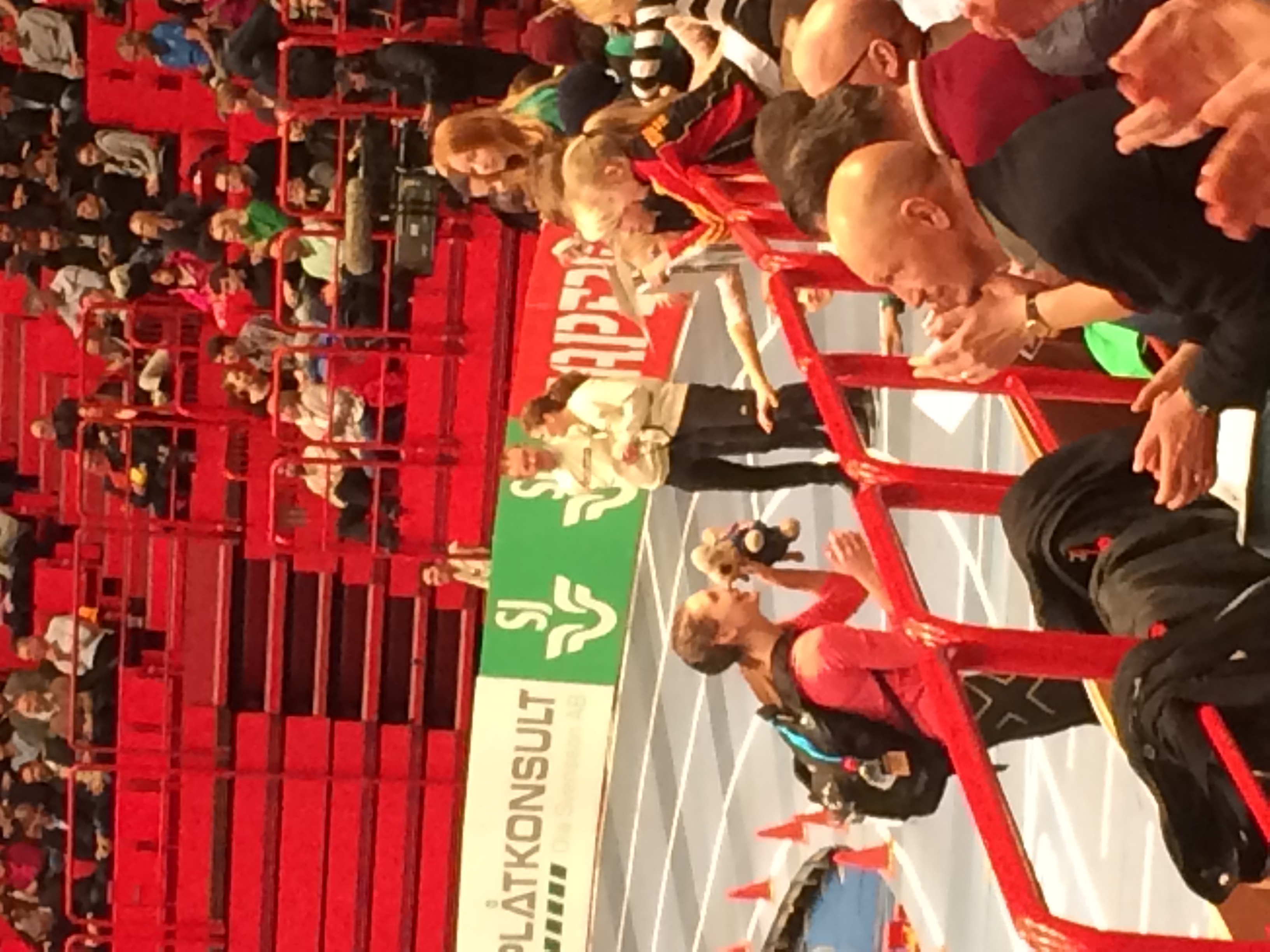 Sofie Skoog imponerade igen under gårdagskvällens Globengalan. Sjätte tävlingen för säsongen och återigen över 1.92. Att det var världsklass på startfältet och stenhård konkurrens bevisas i resultatlistan där hela sex tjejer tog 1.92. Sofie var dock felfri till och med 1.92 vilket gav henne delad ledning efter den höjden. Sofie hade tre goda försök på personliga rekordhöjden 1.95 och de två första var särskilt bra! Ruth Beitia tog 1.95 i sitt sista försök och vann, Sofie slutade därmed som ensam tvåa i tävlingen och tog återigen fina skalper och slog flera välmeriterade hoppare. Sofie trivs i Globen och igår trivdes Globen och dess publik med Sofie, riktigt härlig stämning! Efteråt blev det autografskrivning för Sofie!