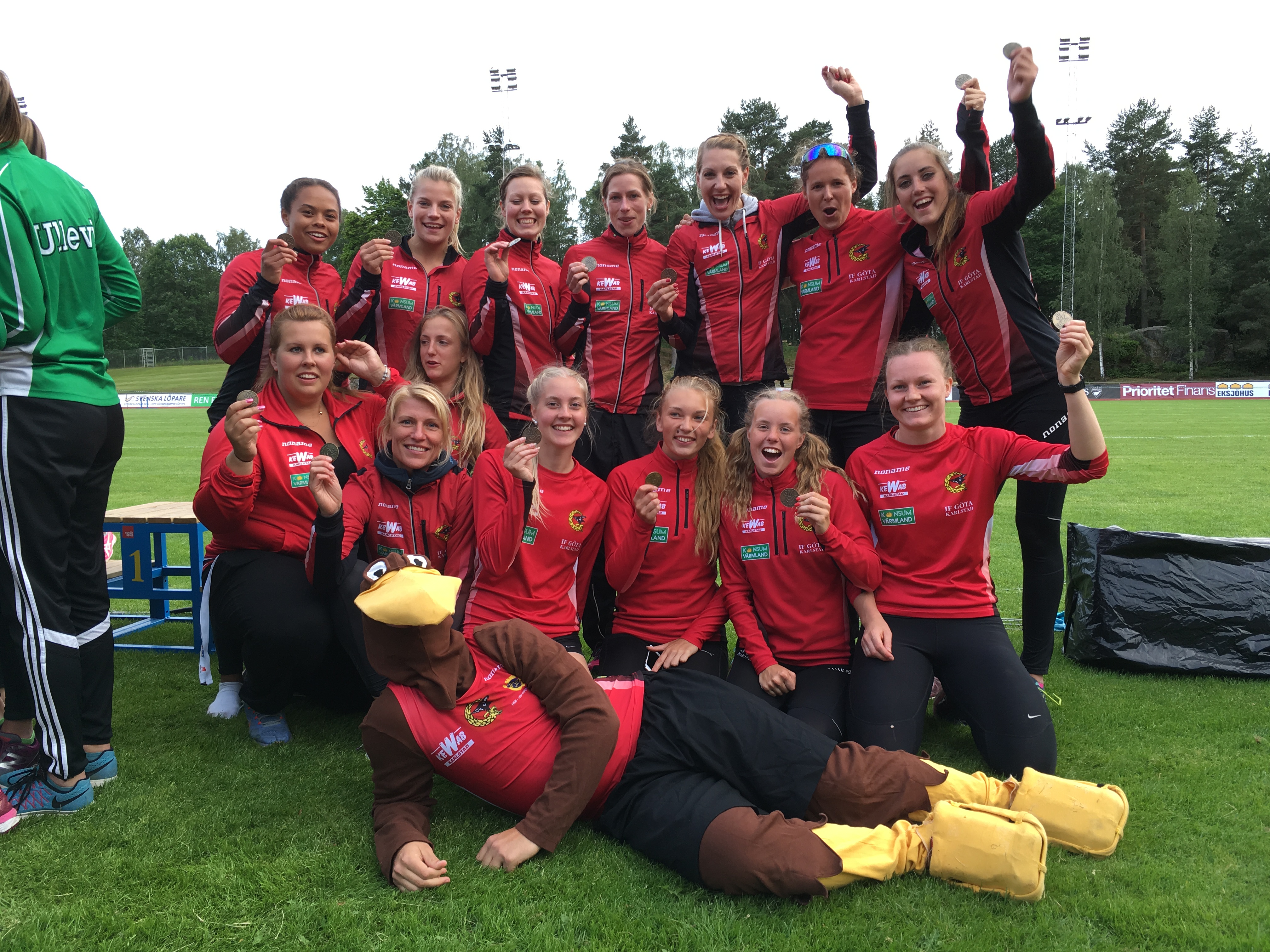 Onsdagen avslutades också på ett fantastiskt sätt! Föreningens damlag lyckades försvara bronsmedaljen från förra året efter en mycket strong laginsats. På pappret visste man att det skulle bli benhårt om platserna 3-5 och att plats fem vill man undvika för då tvingas man till kval. Spårvägen och Lidingö skulle stå för det hårdaste motståndet om bronset men faktum är att det till slut blev nära till ett silver för Götatjejerna! Frida Johansson inledde kvällen bra genom att ta pluspoäng i tresteg med 12.04 och en andra plats. Sedan fortsatte tjejerna med att ta pluspoäng efter pluspoäng, bland annat genom veteranen Linda Take som sprang 2000 meter hinder och kom imål som tvåa. När man sedan bärgade fyra raka grensegrar så seglade Götalaget upp på silverposition för en stund. Grensegrarna kom genom Minna Svärd i stavhopp, Elisabeth Höglund i spjut, Agnes Larsson i kula och Sofie Skoog i höjd. Starkt jobbat av kollektivet och riktigt kul att föreningen presterar när det gäller. Grattis tjejer och stort tack till kapten (Ulf) Karlsson som gjort ett strålande jobb med laget från start till mål!