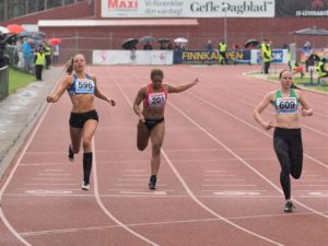 Claudia Payton kapade rejält på sina sprint pers. Först nytt pers 11.85 i försöken på 100m sedan 11.75(w) i finalen. På 200 persade hon också först i försöken med 25.29 för att sedan putsa det ytterligare i finalen till 25.09! Finalen sprangs dessutom i spöregn och vindstilla.