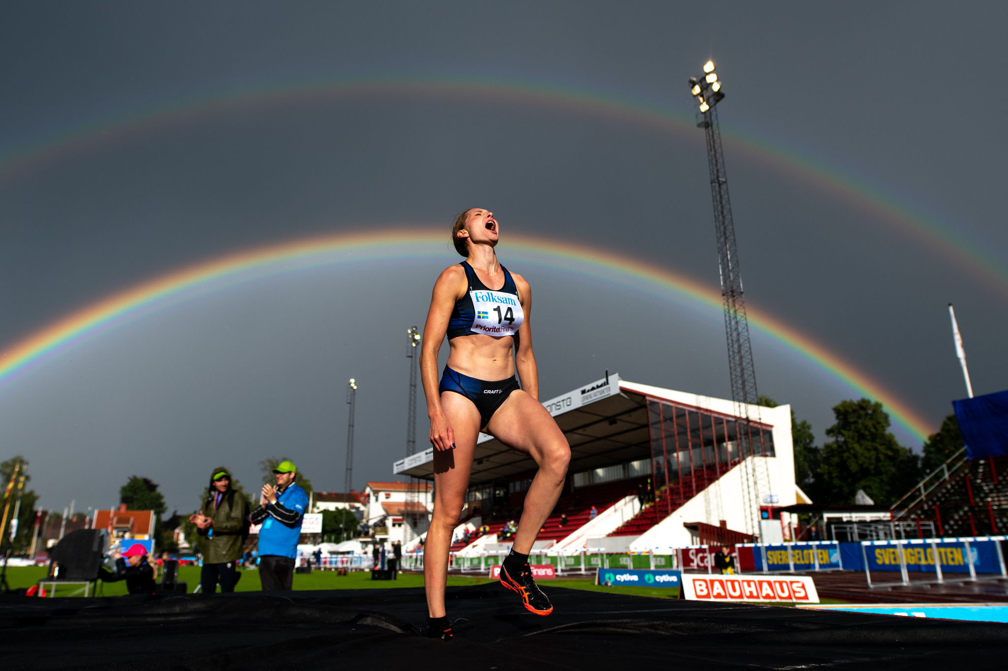 200708 Sofie Skoog of IF Göta Karlstad competes in the women’s high jump during the athletics gala Folksam Grand Prix on July 8, 2020 in Karlstad.