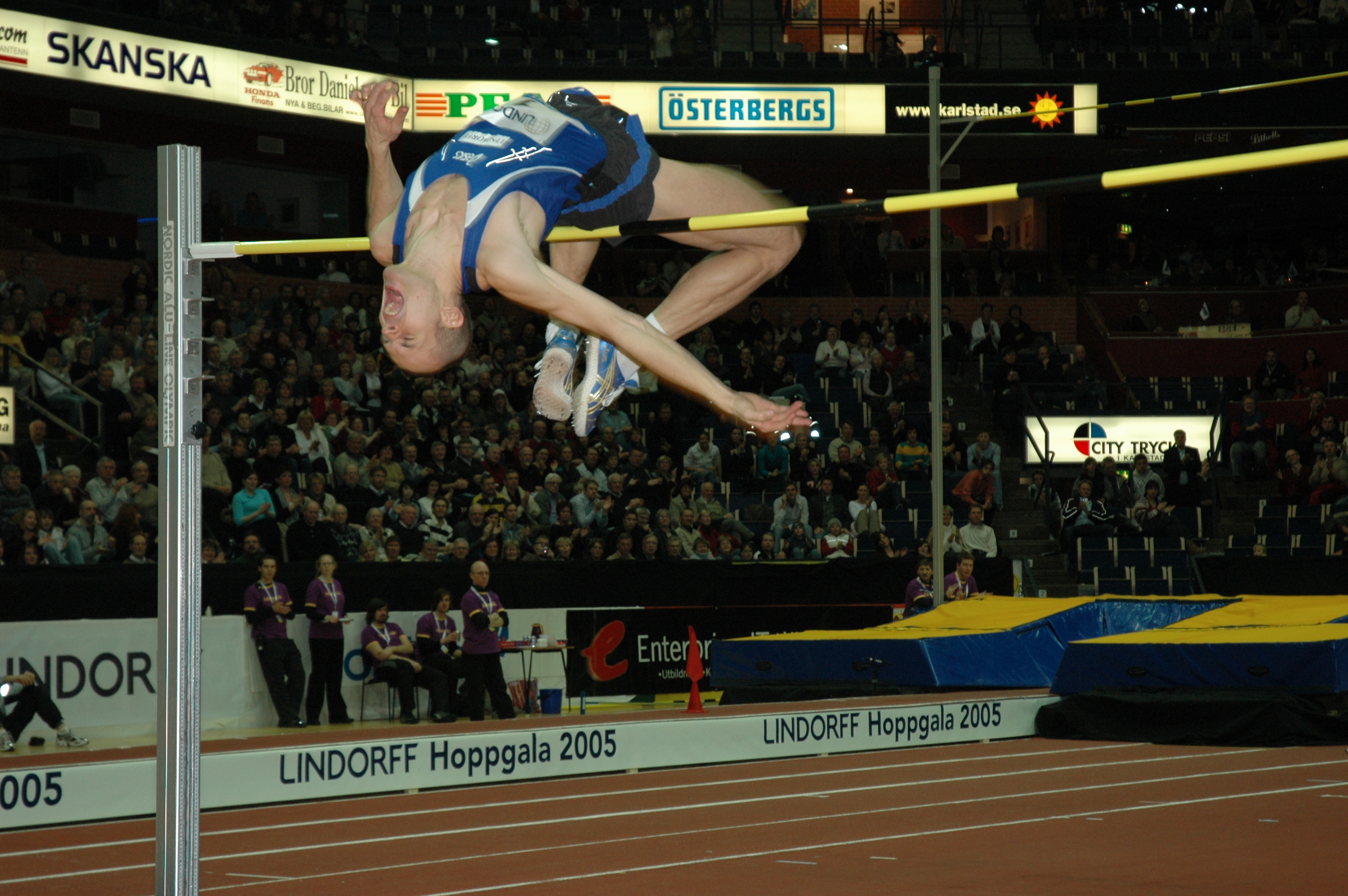 Inspirerade av detta och att Löfbergs Lila Arena (LLA) då fortfarande var tämligen ny och fräsch föddes under hösten tankarna på en inomhusgala! Vi konstaterade tämligen snart att det var i princip helt omöjligt med löpgrenar och valde då att satsa fullt ut på hoppgrenarna. Det visade sig också svårt (och dyrt) att få till sandgropar och därför blev det i slutändan höjd och stav som stod på programmet!