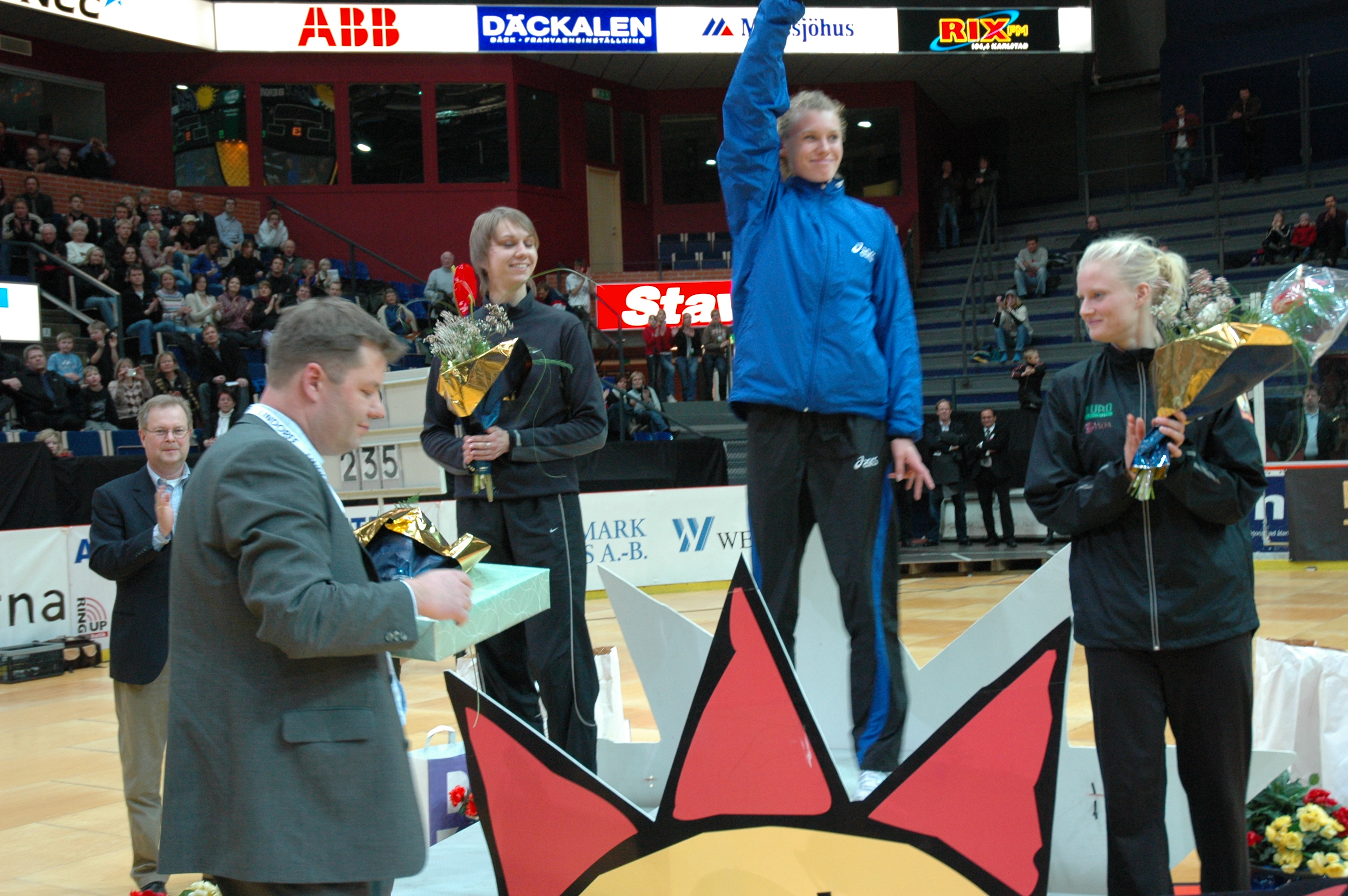 OS-mästarna Stefan Holm och Carolina Klüft var förstås de stora affischnamnen och de lockade tillsammans med övriga aktiva ca 4000 åskådare. Jaroslav Rybakov var ofin nog att vinna höjdhoppet på fina 2,35 före Stefan som trots lite småskavanker innan klarade 2.30. Veckorna senare fick Stefan revansch då han vann Inomhus-EM i Valencia på 2,40! I damernas höjd blev Carro trea på 1,86, samma höjd som en viss Emma Green vann tävlingen på! Emma fick sitt genombrott på sommaren när hon knep bronset på VM i Helsingfors.